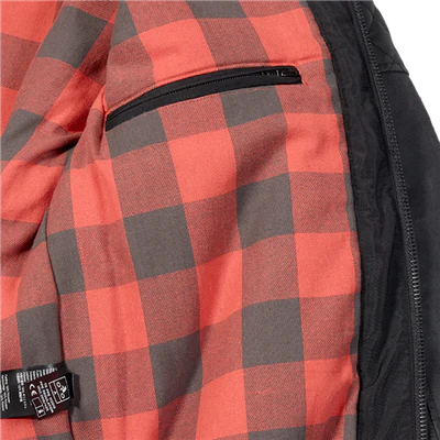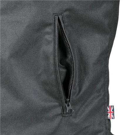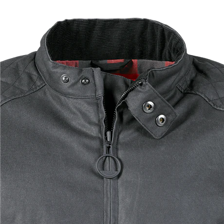 Veste 100% coton ciré de couleur noire, avec protections amovibles certifiées CE.