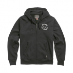 Sweat-shirt zippé à capuche de couleur noire, 100 % coton.