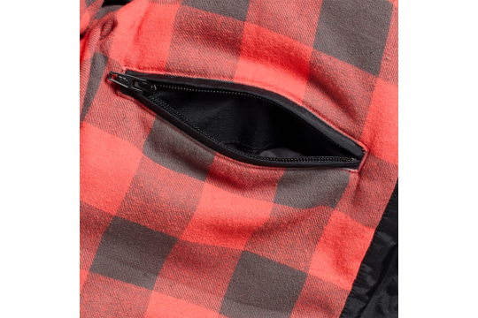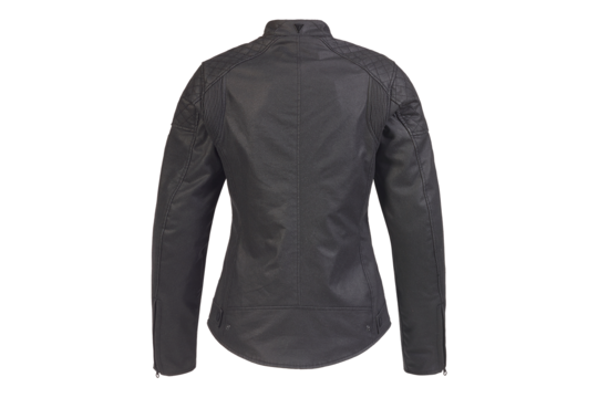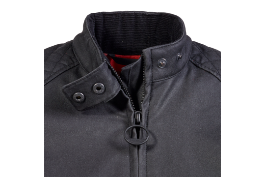 Veste 100% coton ciré de couleur noir, avec protections amovibles certifiées CE, six poches et une doublure gilet matelassée amovible.